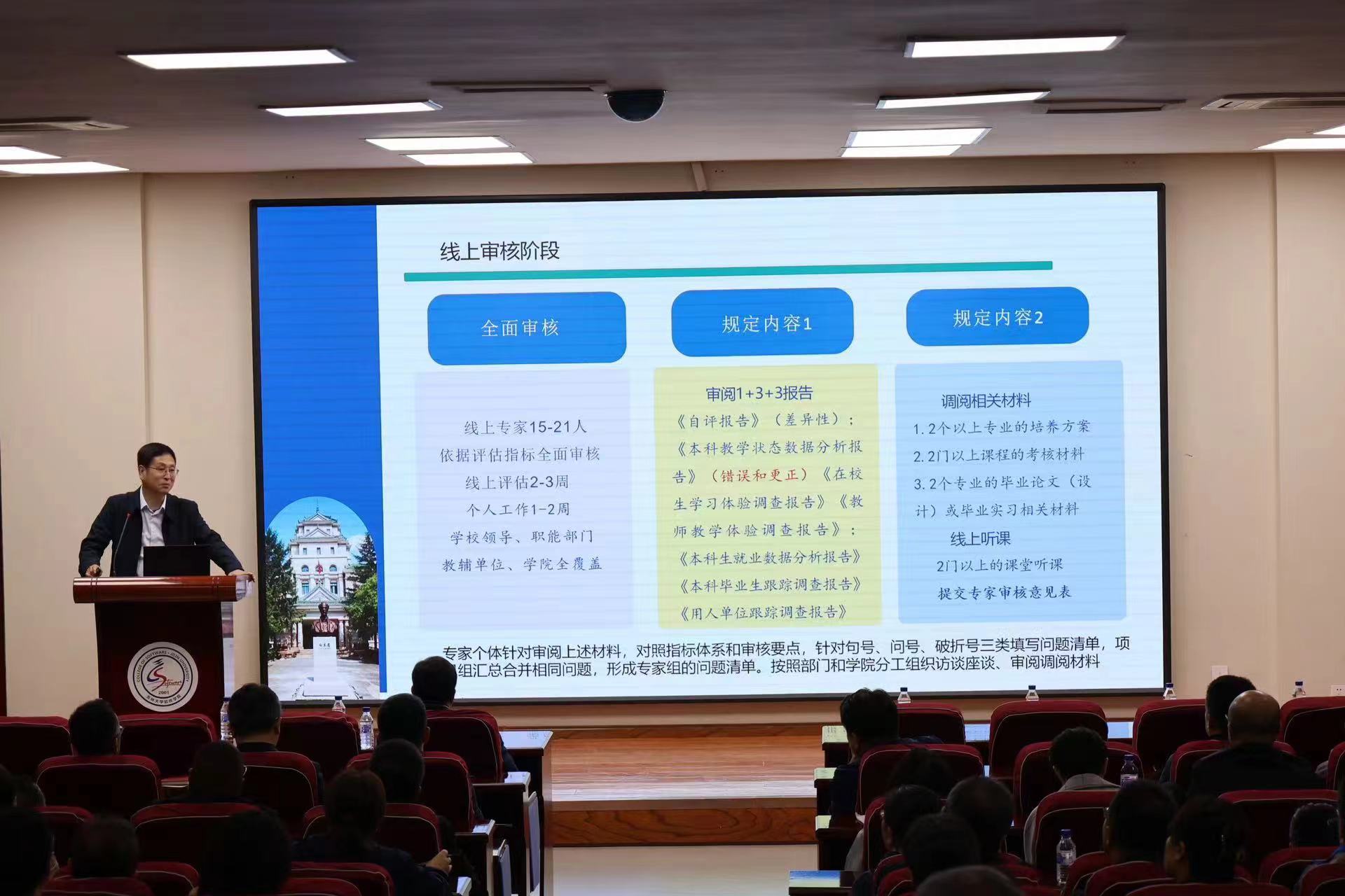 和公共计算机教学中心的全体教职员工进行本科教育教学审核评估的专题辅导报告。报告由杨博院长主持。