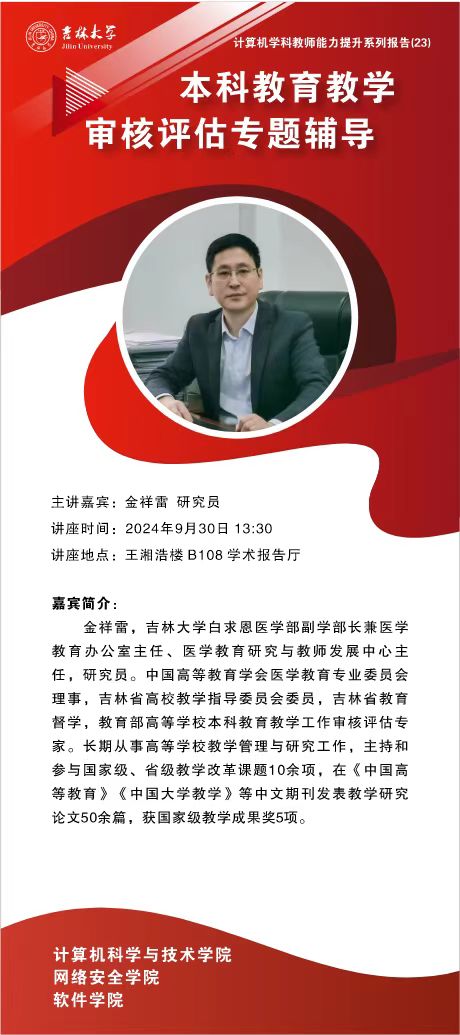 白求恩医学部副学部长兼医学教育办公室主任、医学教育研究与教师发展中心主任,金祥雷研究员受邀为计算机学科的计算机学院、麻豆影视