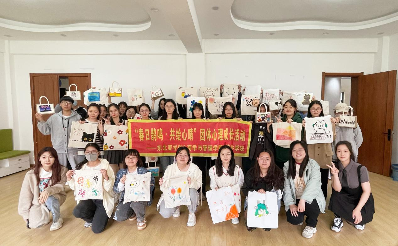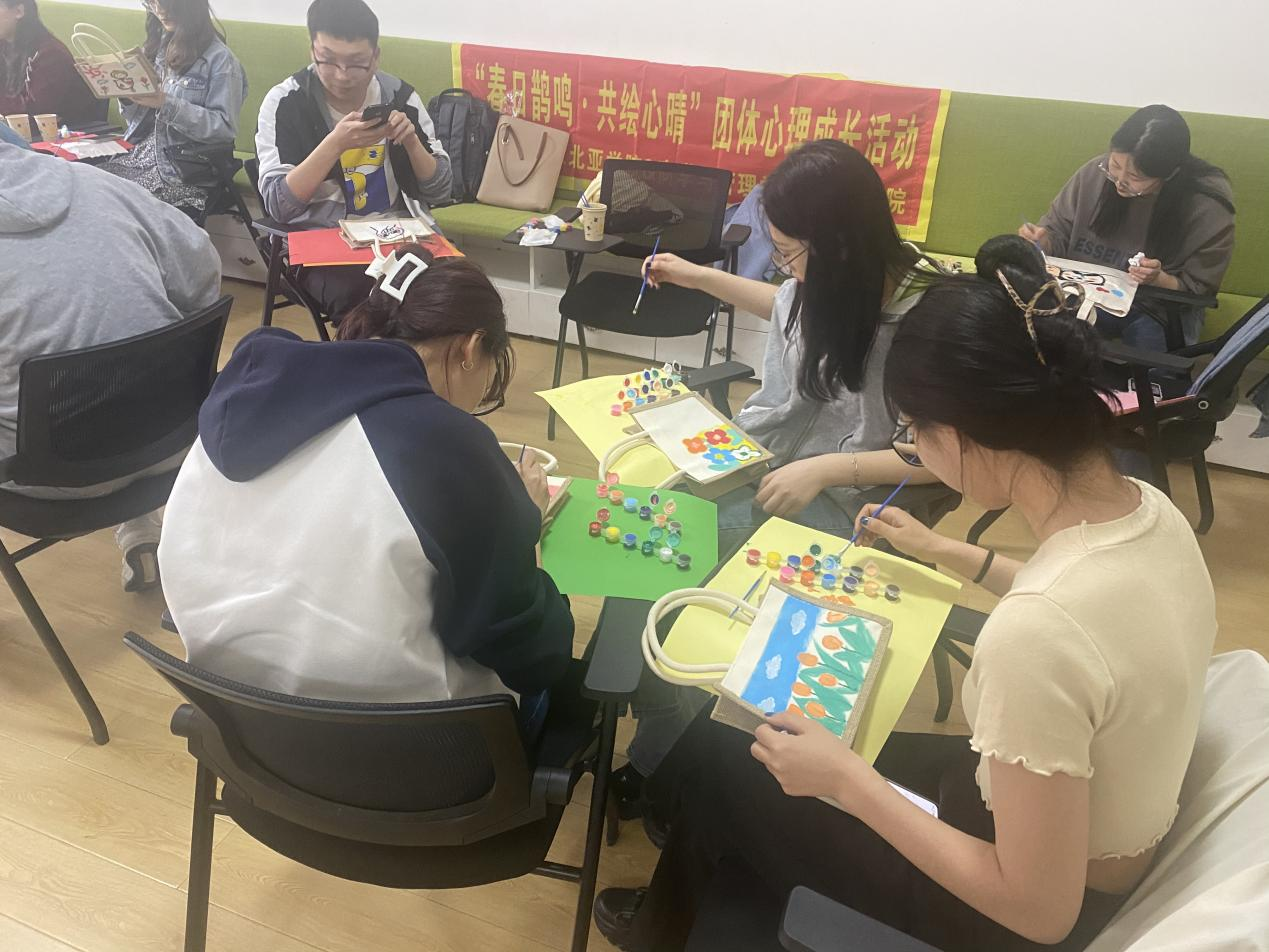 、商学与管理学院和东北亚学院三院研究生朋辈心理辅导员联合开展以“春日鹊鸣·共绘心晴”为主题的帆布包涂鸦活动。