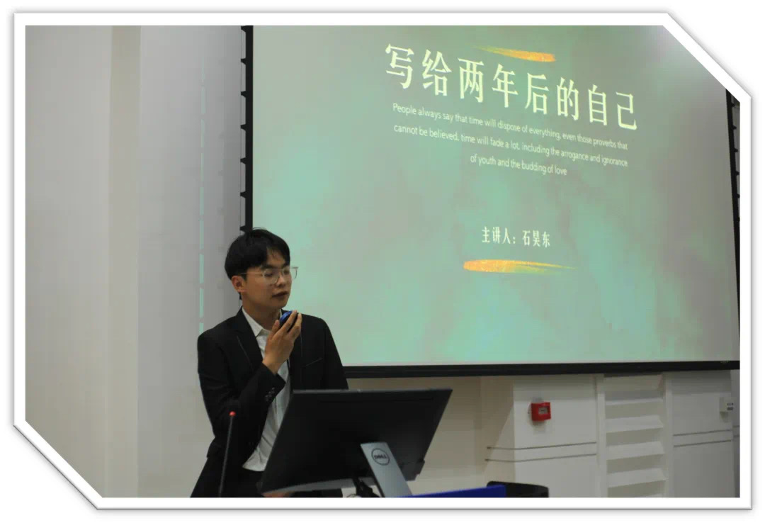 本次活动的消息一经发布,就吸引了许多同学积极踊跃地报名,报名总人数高达68人。活动当天,在学生干部的带领下,我院68名同学聚集在敬信教学楼十一阶梯教室,进行了一场别具一格的“写给两年后的自己一封信”活动,旨在鼓励同学们规划未来,激发个人成长潜力。在活动现场,主持人首先通过宣传和讲解活动背景和意义,吸引了众多同学们积极参与。接下来,同学们在轻松愉悦的氛围中开始给两年后的自己写信。大家认真思考、积极构思,将自己的思考和感悟融入到字里行间。有的同学写下了对未来的展望和计划,表达了对自己的期许和信心;有的同学则写下了对过去的回忆和感悟,表达了对自己的认识和成长。在信件写完后,同学们纷纷将信件放入特制的“时光胶囊”中,由秘书部精心保管。