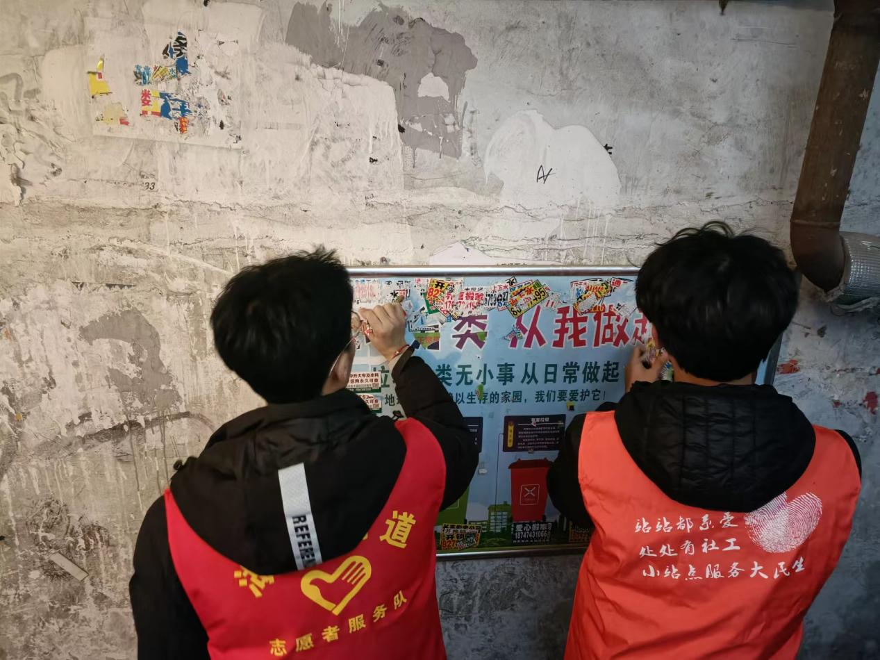 团委联合富豪社区,组织学生开展了整治社区环境活动。对分包区域道路两侧的墙壁、电线杆及小区楼道内张贴的各类小广告进行集中清理。本次志愿者均为22级星火计划成员,其作为党员的后备力量,不仅要在思想上加强自己的党性修养,更要在行动上表明自己期望入党的决心。