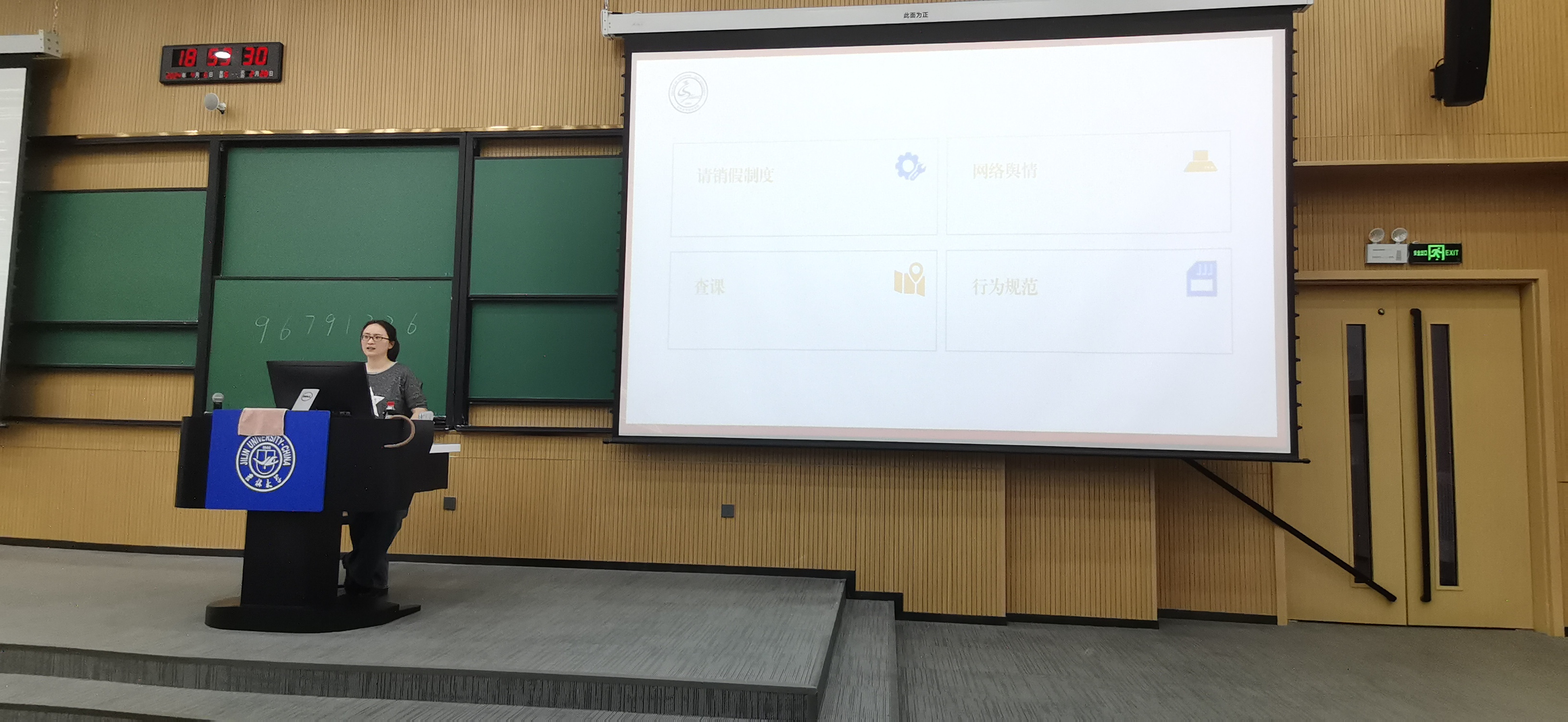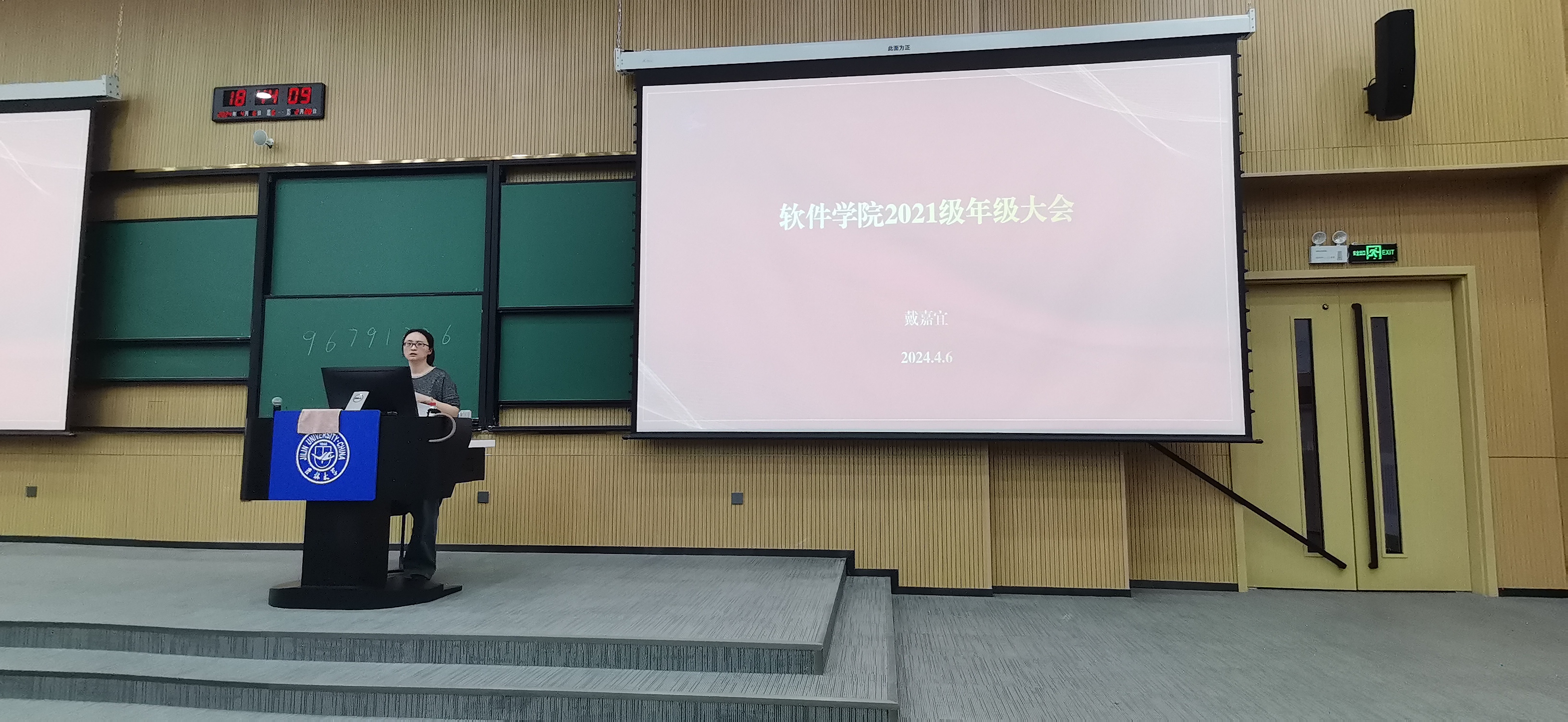 于4月6日在敬信楼第五阶梯教室召开新学期2021级本科生年级大会,会议由2021级辅导员戴嘉宜老师主持。