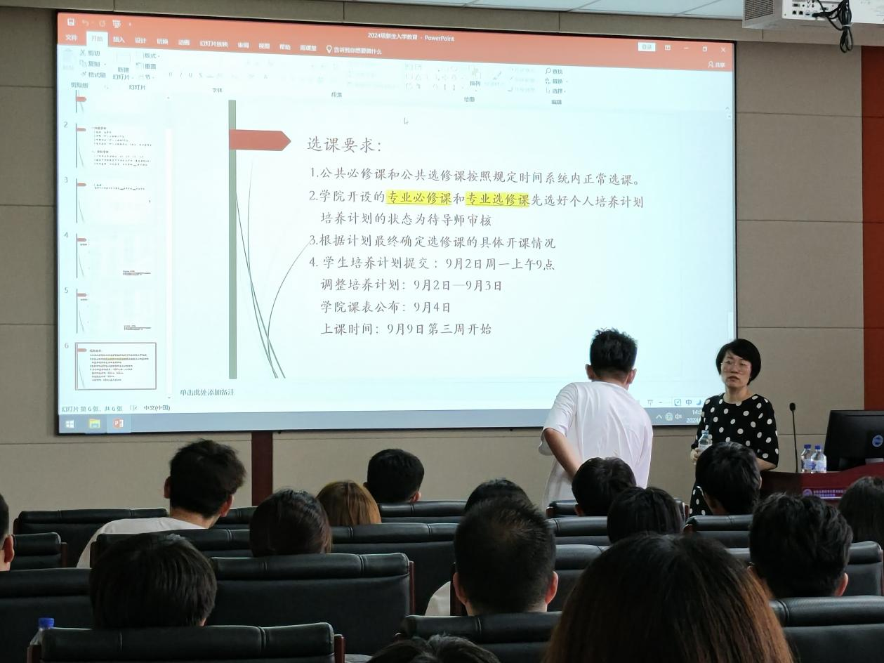 为帮助我院2024级研究生尽快适应研究生生活,尽早做好研究生阶段的学习规划,8月30日上午,学院于2024年8月30日下午1:30举办研究生日常管理条例解读及研究生培养规定介绍讲座。学院全体2024级研究生参会,讲座由研究生秘书张琳老师和研究生辅导员张译心老师讲解。