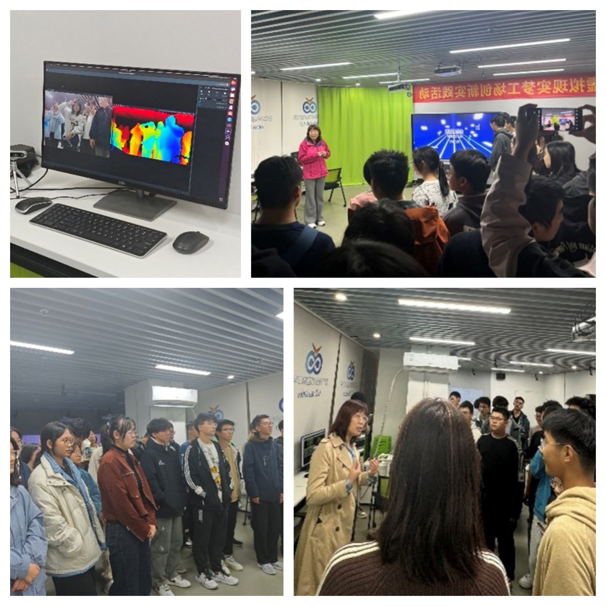 于10月14日举办实验室开放日活动,组织学生参观创新创业实践示范基地——虚拟现实梦工场。