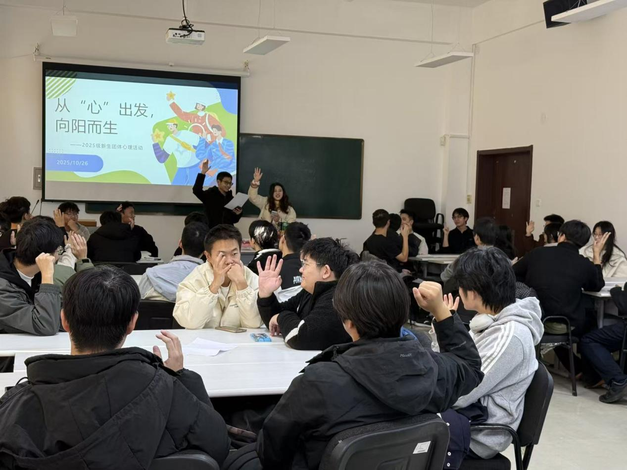 在王湘浩楼A124分场次为2025级新生开展团体心理辅导主题班会。活动由学院朋辈心理辅导员罗晓晴主持,各班班代与新生志愿者通力协作,现场暖意融融、活力涌动。
