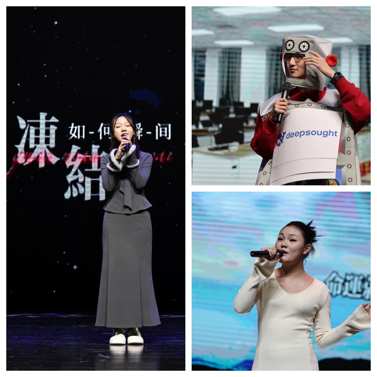 45名研究生同学共同演绎的朗诵《青年说》,气势磅礴,字句铿锵,彰显新时代青年的责任与担当。王佳玉的一首《光年之外》空灵悠远,带领观众遨游于音乐与遐想的星空。街舞串烧《Whiplash》《Illusion》《Go Hard》将舞台化为能量迸发的竞技场,高难度动作与默契配合将晚会推向高潮。四重唱《鹿Be Free》纯净治愈,仿佛林间清风,抚慰心灵。辅导员助理演绎的原创情景剧《重生之我是AC高手?》,以幽默诙谐的方式呈现学子在代码与学业中穿梭的奇想故事,笑声中蕴含对专业学习的思考。付芮荧的《我会等》,歌声真挚动人,勾勒出青春里关于坚持与等待的情感画卷。最后计算机学院110名研究生共同唱响《我和我的祖国》,深情激昂的歌声融合了青春的热血与对祖国的热爱,为整场晚会画上温暖而有力的句号。
