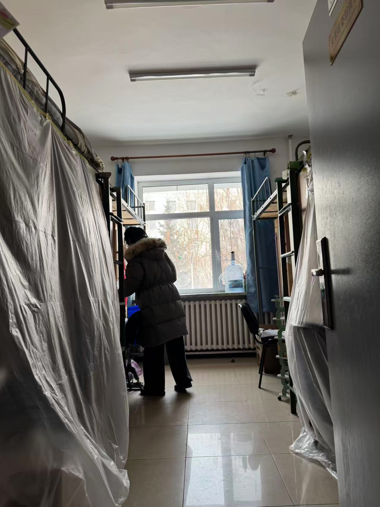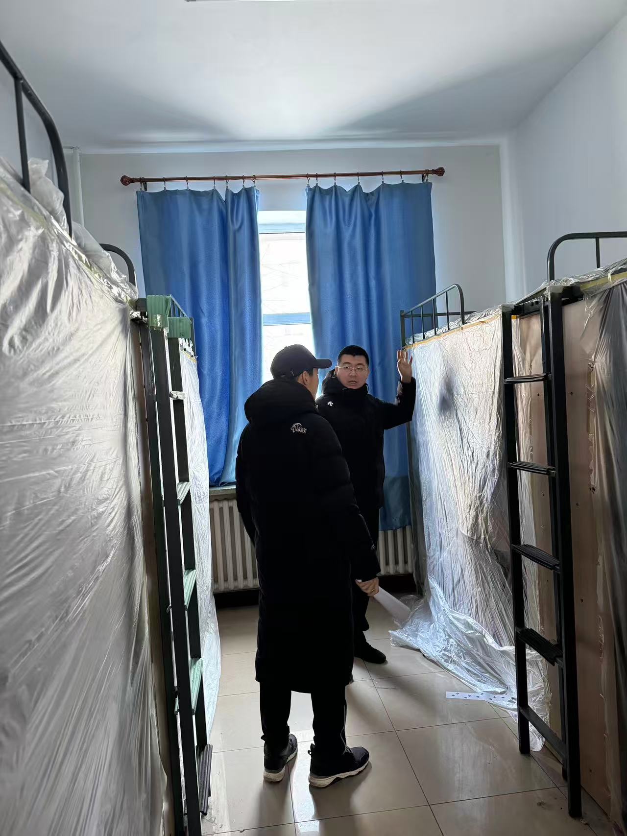 本次走访检查围绕工程施工准备假期安全保障两方面展开。针对空调安装电气系统改造的要求,重点检查了学生个人物品整理情况:督促学生们将零散物品收纳至储物柜并上锁,贵重物品随身携带或妥善保管;逐一核查床帘等寝具是否拆除,床铺及周边空间是否清空,窗台物品是否收回,确保施工区域畅通无阻。针对北苑一公寓重点围绕宿舍用电安全、防火防盗、卫生环境等方面展开,对登记的留校学生进行确认。检查过程中,老师们逐一排查了违规电器使用、电源关闭、阳台杂物堆积等潜在风险,耐心叮嘱离校同学务必做到断水断电、关窗锁门,妥善保管个人贵重物品。