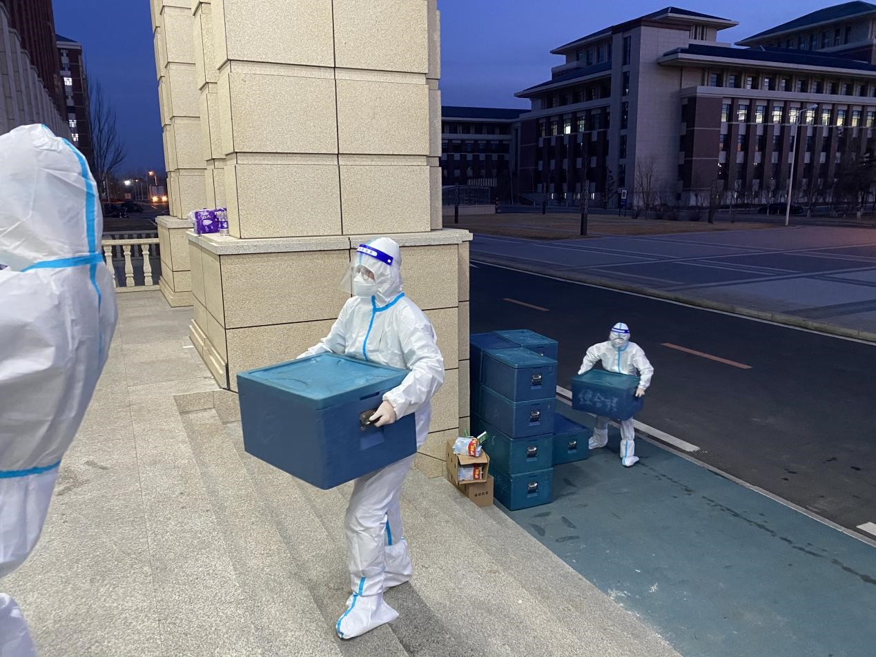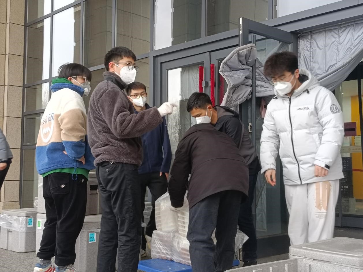 2022年3月25日,我院研究生志愿者在辅导员老师的号召下主动承担起北苑四公寓全楼物资配送任务,迅速成立了三支志愿者队伍:第一支由2019级党支部书记潘得新带领的5人志愿先锋队,协助楼长负责全楼整体工作;第二支由2021级党支部书记高磊带领的30人纵向配餐志愿者队伍,负责将门口的所有物资转运分发给各楼层同学;第三支由麻豆影视