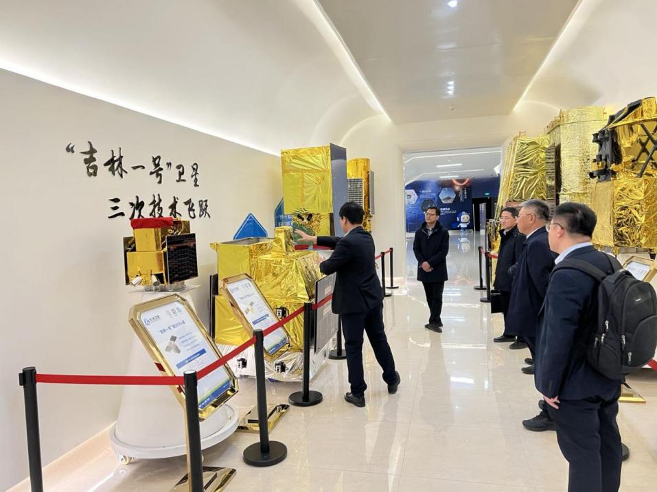 杨博院长带队到来表示热烈欢迎,并介绍道“吉林一号”星座已正式步入高速组网期,在遥感信息服务上占据优势地位,并逐渐成为全球重要的航天遥感信息来源。在长光卫星科研部部长韦树波的陪同下参观长光卫星航天科普教育基地,韦树波详细介绍了长光卫星公司8年来的发展历程,及吉林一号各系列卫星的性能指标,并带大家近距离观看卫星生产的全流程。数据中心二室主任白杨汇报了吉林一号卫星数据生产处理全流程,数据中心三室主任朱瑞飞汇报了吉林一号星座的应用服务情况。